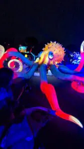 Cada Navidad el evento se ha desarrollado en un entorno diferente. Los primeros años tuvo lugar en el Parque Juan Carlos, ubicado al lado del IFEMA. Este año el escenario elegido ha sido el Parque de La Alhóndiga, en Getafe, que se transformado en un auténtico espectáculo de luz, color y naturaleza. Y es que, esta experiencia inmersiva combina arte, tecnología y creatividad para ofrecer a visitantes de todas las edades un recorrido nocturno mágico que celebra la biodiversidad y la fantasía.