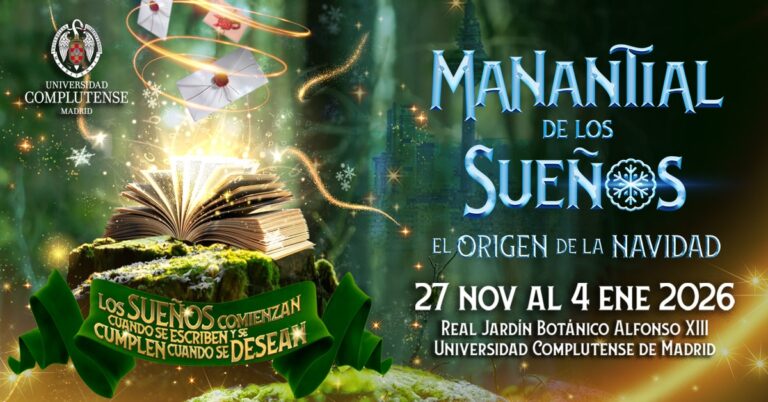 TogglePor cuarto año consecutivo, el Real Jardín Botánico de Alfonso XII, ubicado en el corazón de la Ciudad Universitaria, acoge «El Manantial de los Sueños. El Origen de la Navidad». Una experiencia muy especial para pequeños y mayores, que podrán disfrutar del parque temático viviente más increíble de la Navidad, una experiencia inmersiva en 50.000m2, que incluye shows sobre hielo ❄️, hadas 🧚♀️, pista de patinaje ⛸️, conocer a Los Reyes Magos en El Campamento Real 👑, saludar a Papá Noel 🎅🏼 en su villa, proyecciones sobre agua ⛲️ gastromarket 🍽️ desfiladeros de hielo y mucho más en un reino absolutamente mágico