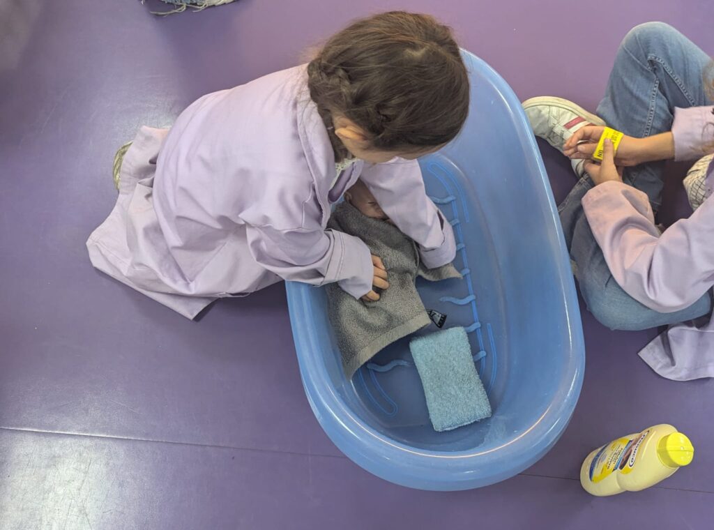 Bañando a un bebé en el nido de Micrópolix
